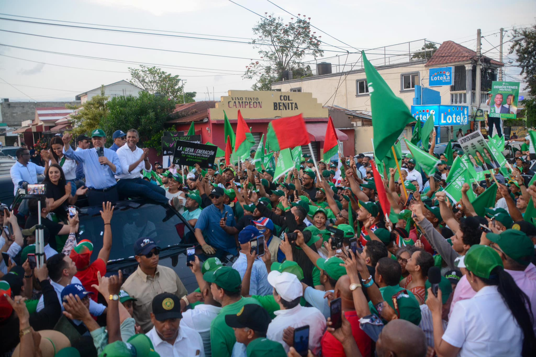 Al inicio de la tarde, el líder opositor encabezó similar actividad en La Vega, donde miles de personas tiñeron de verde los principales barrios de la ciudad olímpica.