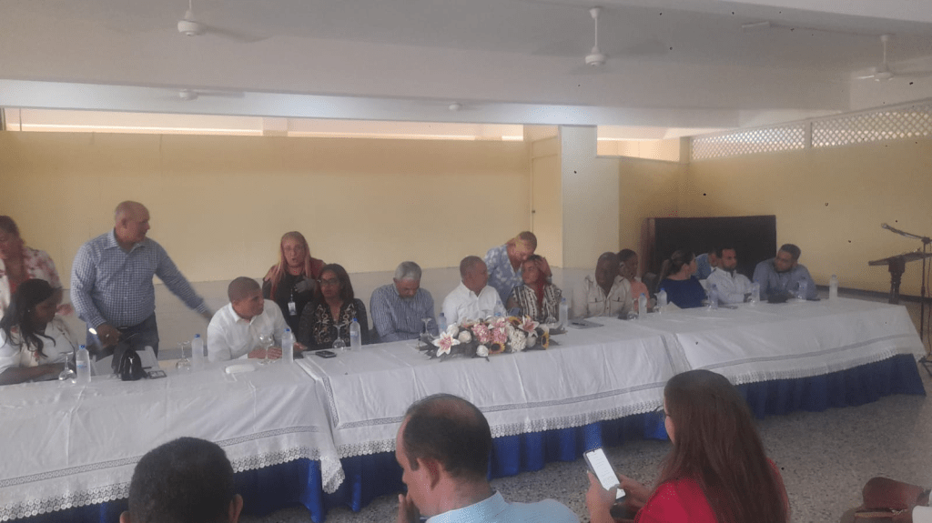 BANI.-El salón de la cuarta planta del Ayuntamiento Municipal de Baní, sirvió de escenario la mañana de este jueves para que se llevara a cabo la Asamblea de conformación del Consejo Económico y Social Municipal para el periodo 2025-2029.
