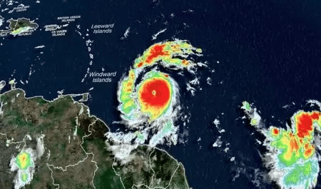 Beryl, que se formó de forma extremadamente rápida y temprana en el Atlántico, impactó esta mañana al sur de las islas de Barlovento como un poderoso huracán categoría 4 con vientos y marejada ciclónica «potencialmente mortales».