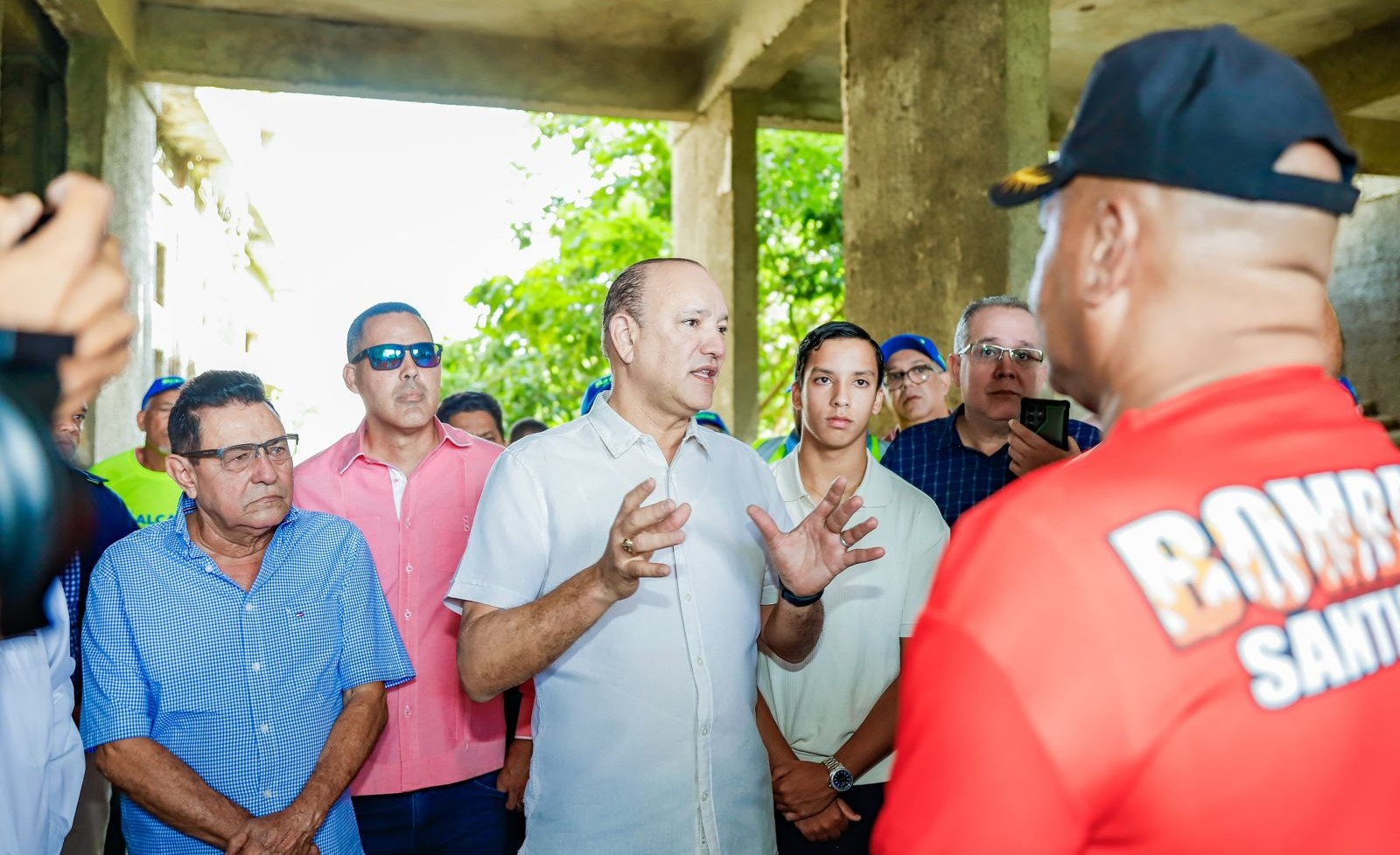 Rodríguez habló desde los terrenos del abandonado edificio, ubicado en la avenida 27 de Febrero, en el sector El Dorado I. Estuvo acompañado por varios integrantes del Patronato del Cuerpo de Bomberos, con los que se había reunido desde antes de ser alcalde.