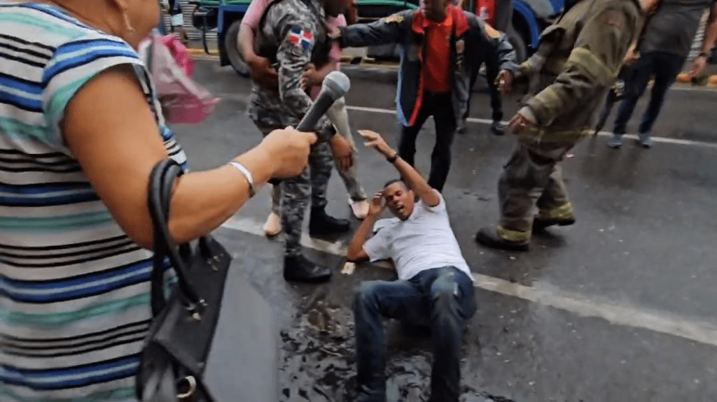 en un hecho donde también se vieron involucradas las periodistas Amparo Infante y Maricela de la Cruz, mientras daban cobertura al fuego que afectó una plaza comercial en el centro de la ciudad de Santiago.