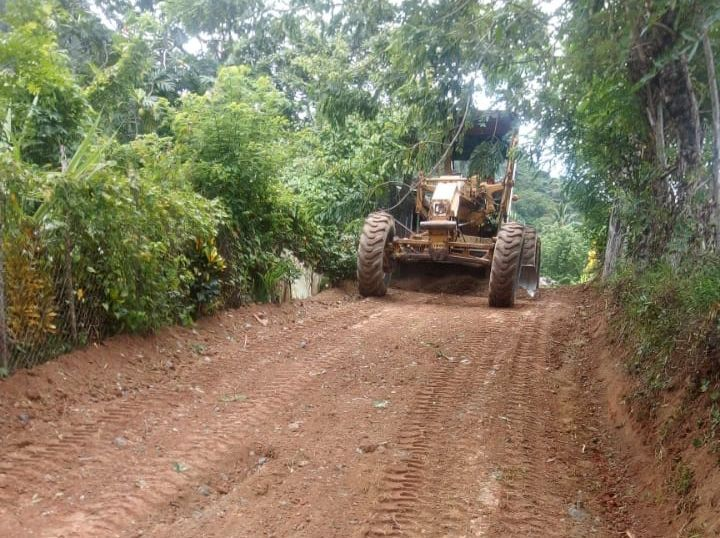 Maquinarias pesadas del Ayuntamiento local trabajan en el arreglo de los caminos de acceso a distintas comunidades que resultaron afectados por la acción corrosiva de las lluvias.