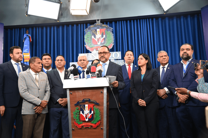 La entrega de la propuesta de reforma constitucional se produjo esta tarde ante el Senado de la República, en la persona de Ricardo de los Santos, presidente, y de otros legisladores de la cámara alta.