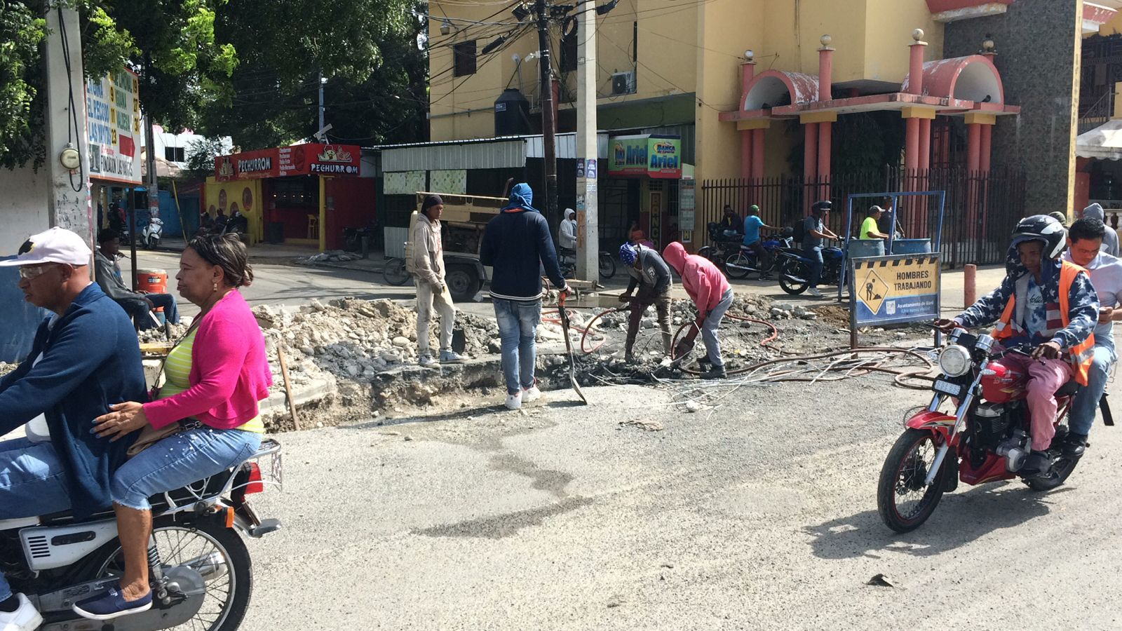 BANI.-El badén ubicado en entrada de la comunidad de Peravia próximo a la Fortaleza está siendo reparado por obreros del Ayuntamiento de Baní, ya que producto a las aguas y el tránsito pesado que circula por esa zona se encontraba muy deteriorado.