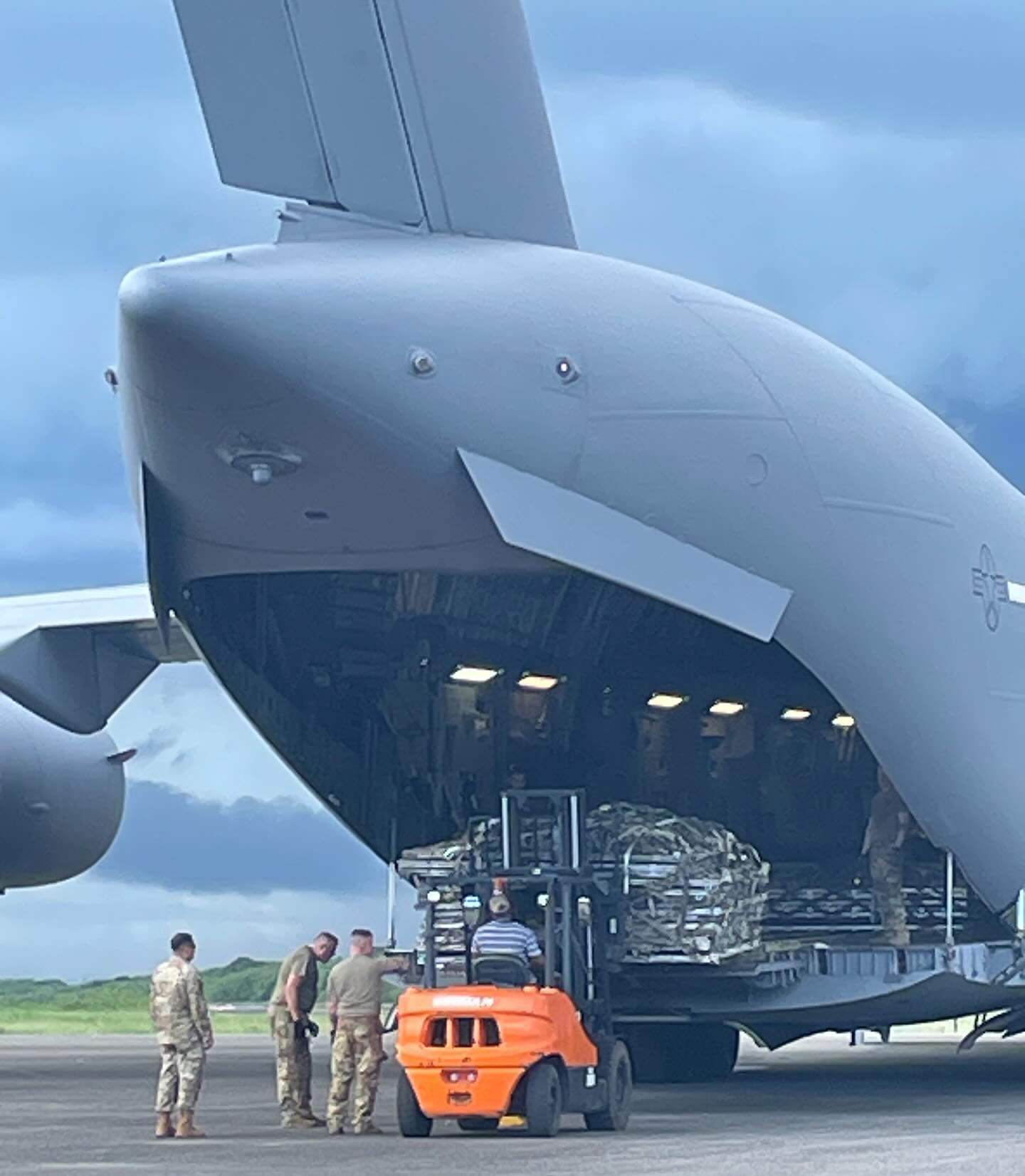 SANTO DOMINGO.-En un importante gesto de solidaridad y apoyo humanitario, un avión C-17 Globemaster III, aeronave de transporte militar de gran capacidad, llegó a la República Dominicana con una donación destinada a beneficiar a personas en situación de vulnerabilidad en el norte del país.
