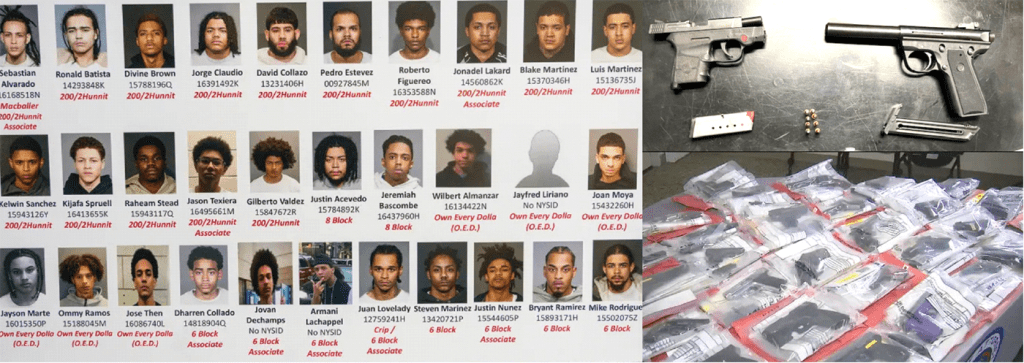El fiscal Alvin Bragg Junior dijo en rueda de prensa que al menos 18 de los detenidos pertenecen a la pandilla «200/8 Block», ocho a «6 Block» y cuatro a «Own Every Dollar».