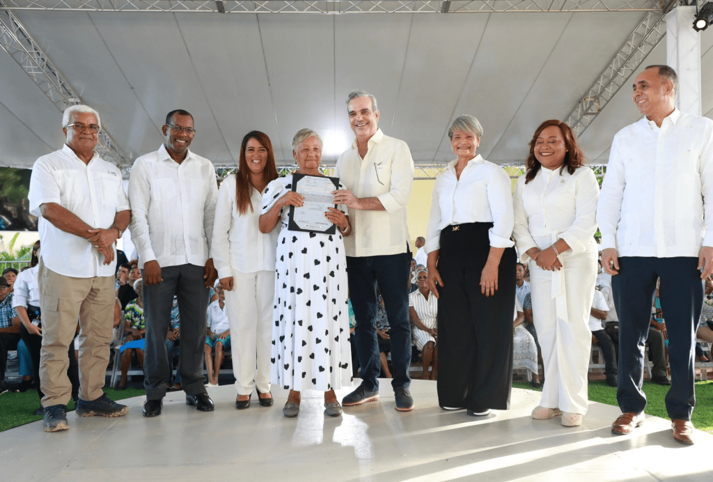 SAN PEDRO DE MACORIS.- El presidente Luis Abinader entregó 394 títulos de propiedad a igual número de familias en el municipio Ramón Santana, de aquí.