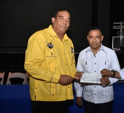 El licenciado Alex Díaz Paulino alcalde de la ciudad del Jaya entregó una importante aportación al periodista Tony Reyes secretario general del gremio que aglomera los principales comunicadores deportivo de esta provincia.