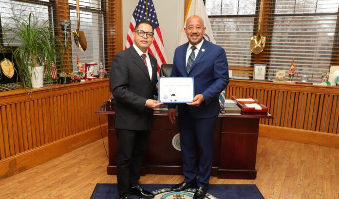 LAWRENCE.– El alcalde Bryan A. De Peña otorgó un reconocimiento especial al periodista dominicano Robert Linarez, oriundo de Miches, El Seibo.
