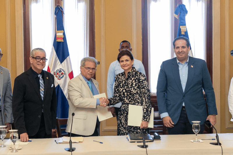 El acuerdo fue firmado este sábado por la vicepresidenta de la República, Raquel Peña, quien también es presidenta del Gabinete de Salud, y por el presidente del CMD, Waldo Ariel Suero, en un encuentro que contó con la participación de los miembros titulares del referido gabinete y los demás integrantes de la directiva del gremio de los galenos..
