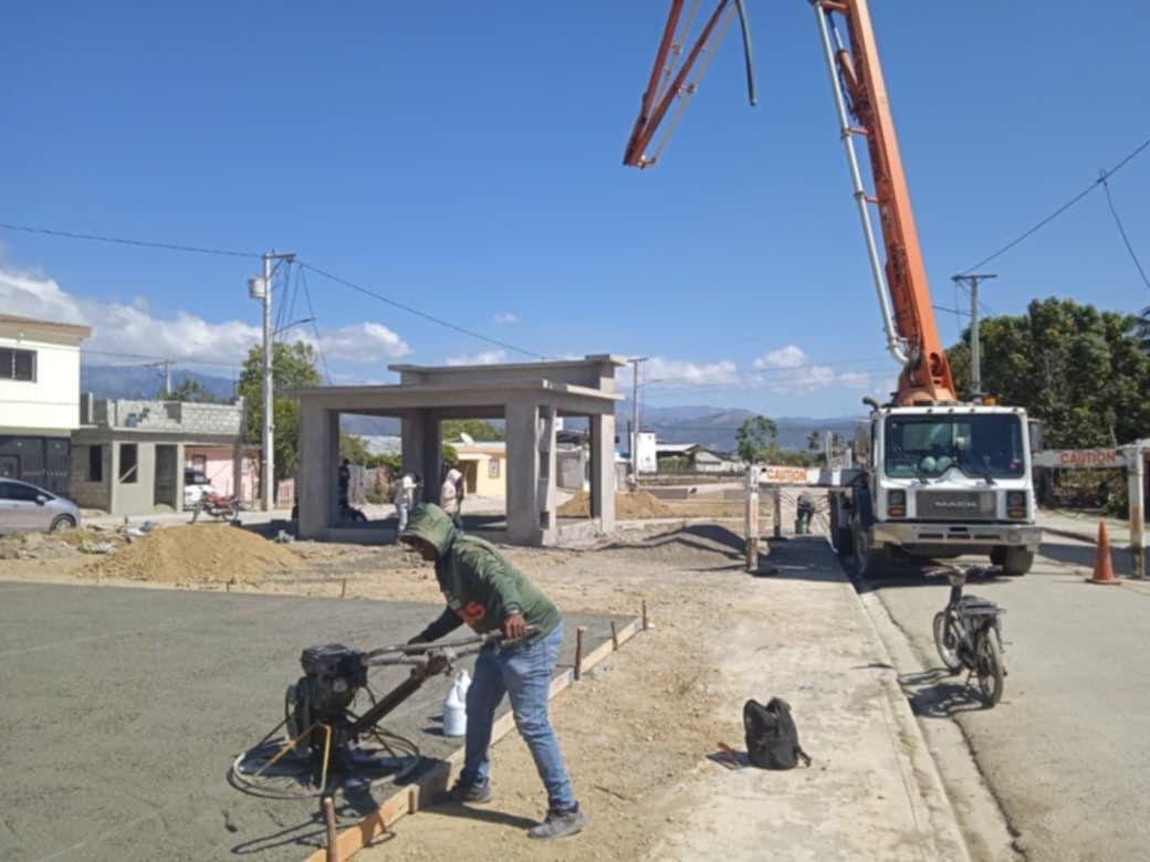 SAN JUAN DE LA MAGUANA.-Esta semana las brigadas del equipo de obras municipales, ha procedido con el vaciado de concreto del área de la cancha, que es construida en la parte oeste del mismo.