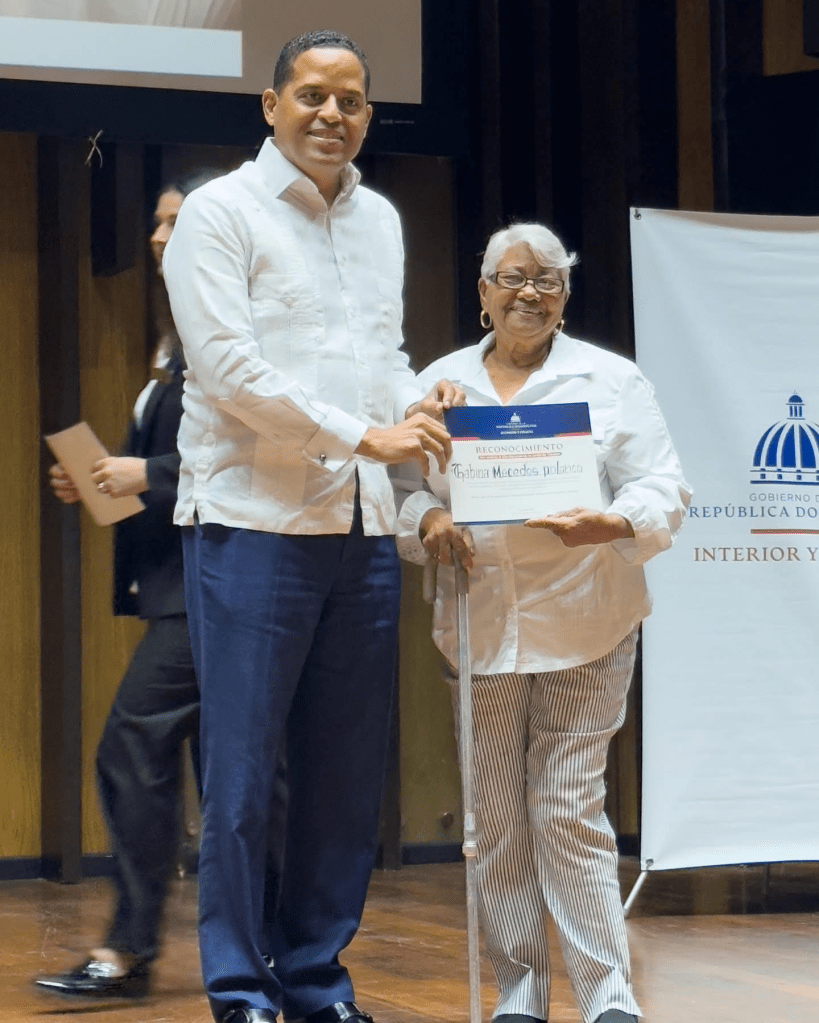 MOCA, Espaillat.-En el marco de la celebración del Día Nacional de las Juntas de Vecinos y Organizaciones Comunitarias, establecido por la Ley 60-18, el Ministerio de Interior y Policía, otorgó un merecido reconocimiento a la señora Gabina Mercedes Polanco (Doña Chea), presidenta de la Junta de Vecinos de la comunidad de Guauci, Moca, por su destacada labor y entrega a las causas comunitarias de su sector y zonas aledañas.